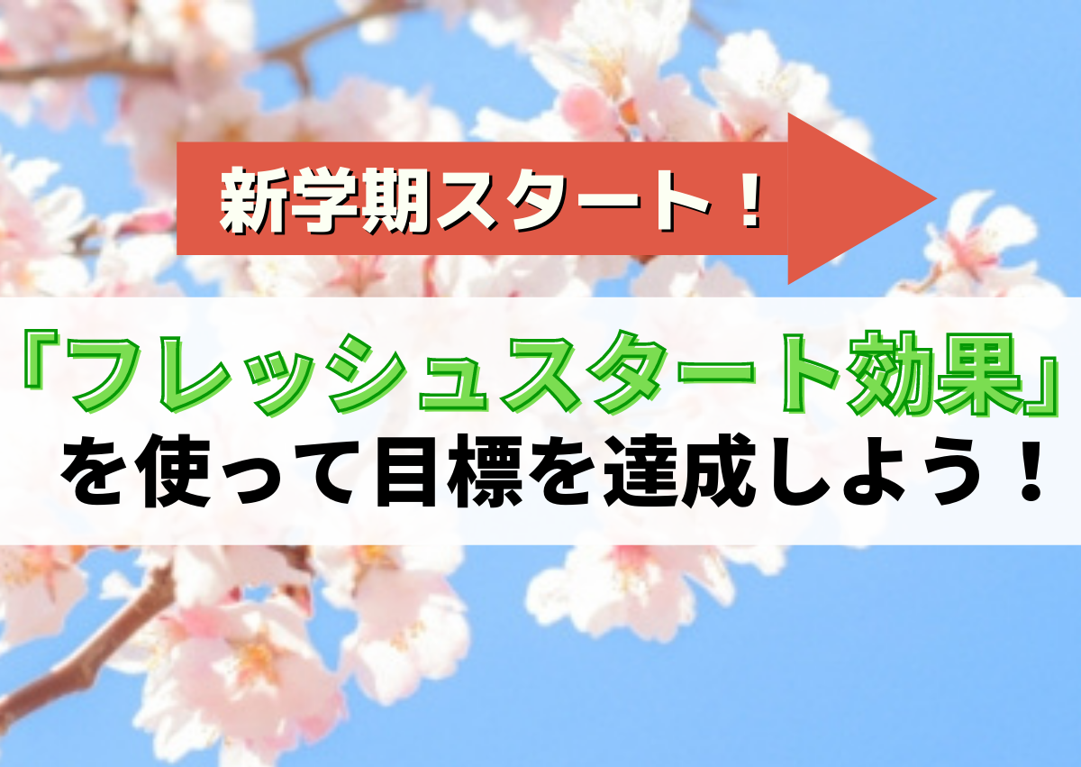 「フレッシュスタート効果」とは、年、月、週の初め、新学期など新しくが始まるときに、今日から「頑張るぞ!」と目標を立てそれに向かって努力を始めた人は、そうでない時期に始める人と比べて目標達成率が3.5倍大きくなるという研究発表です。