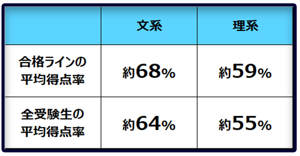 まず、一般入試合格のための得点率目安を知っておいてください。