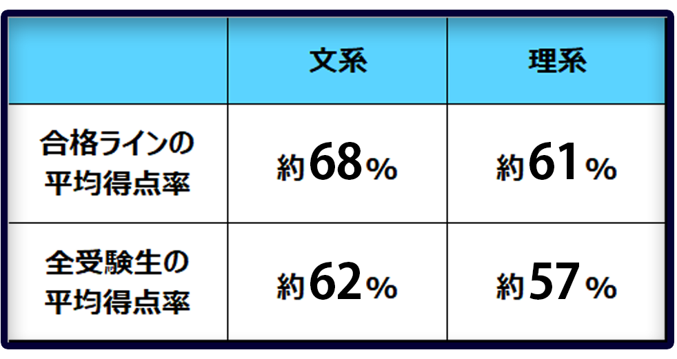 まず、一般入試合格のための得点率目安を知っておいてください。