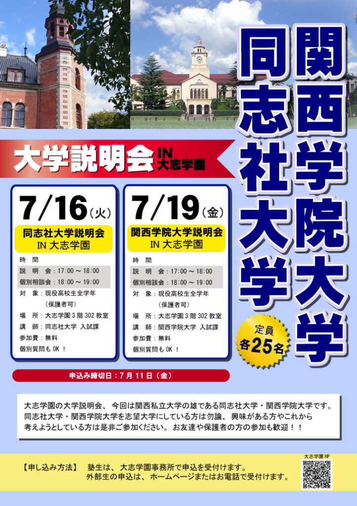 大志学園は大阪府岸和田市で生まれ、岸和田をはじめ地域の現役高校生の大学受験を指導し続ける学習塾です。