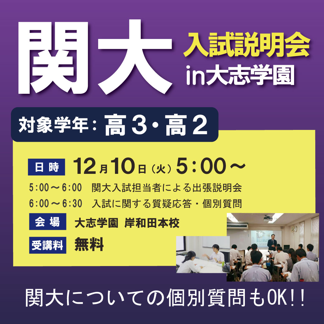 会 場:大志学園 〒596-0076 大阪府岸和田市野田町1-6-27(南海岸和田駅から徒歩すぐ)